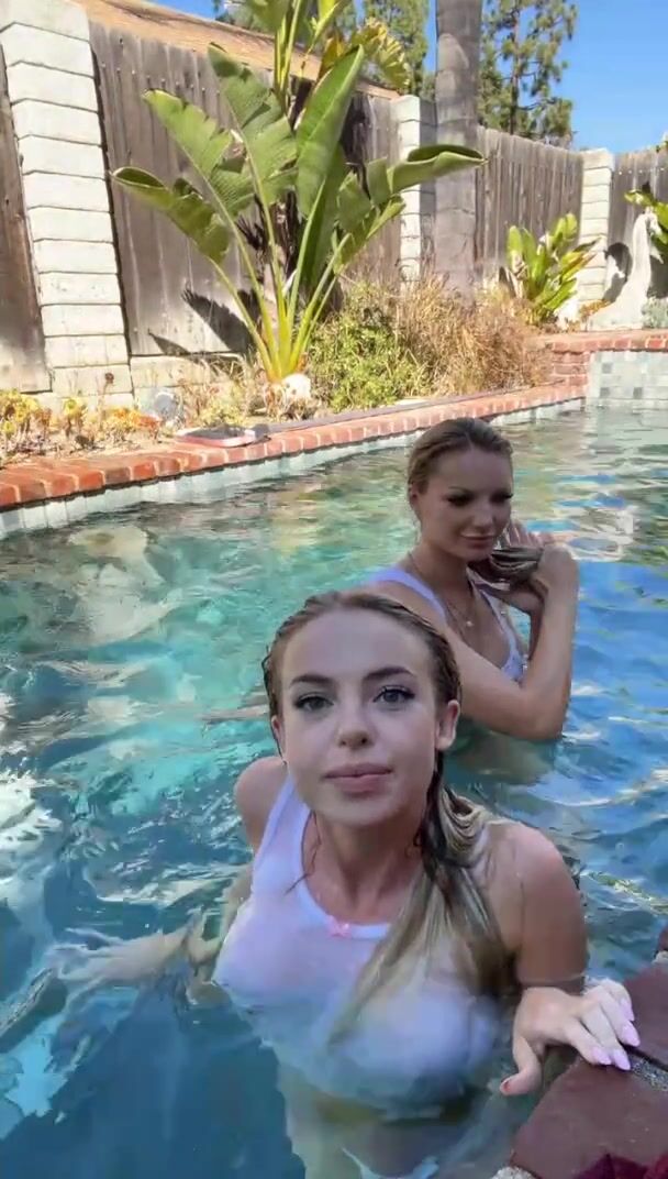 Emma Kotos Hot Babes Sucking Tits And Kissing In The Pool While Steaming Video