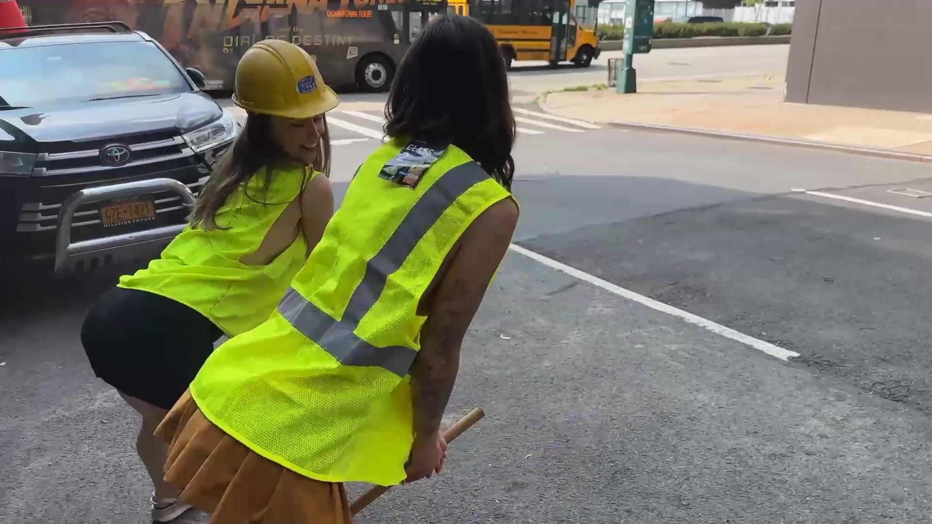 Sexy Road Cleaners Twerking And Shows Their Tits In Public Video