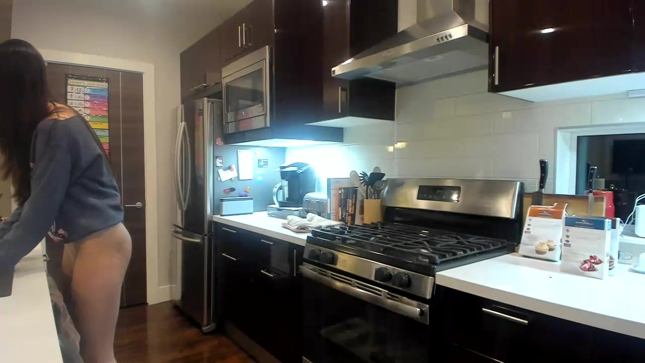DelightfulHug Working In The Kitchen Wearing Just A Thong And Teasing Juicy Tits Video