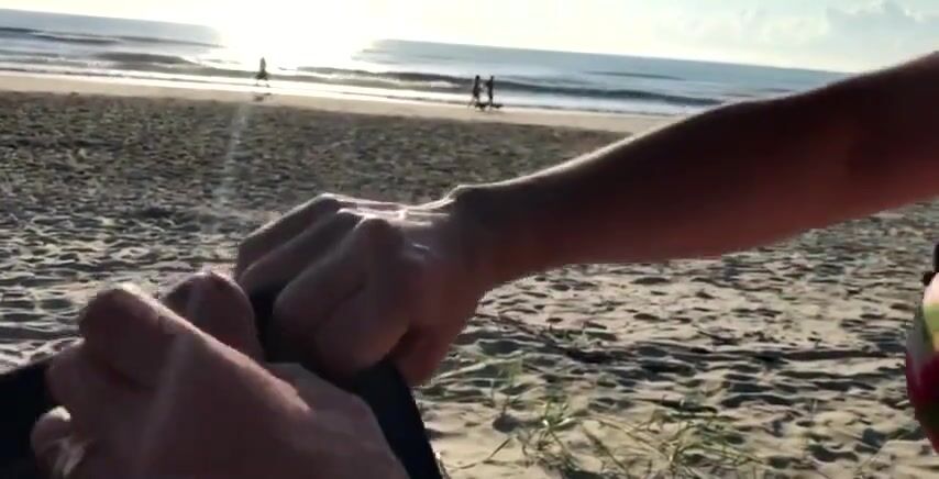 Today in public friday a girl sucking, stroking and fucking her friend on the beach while people are walking by.