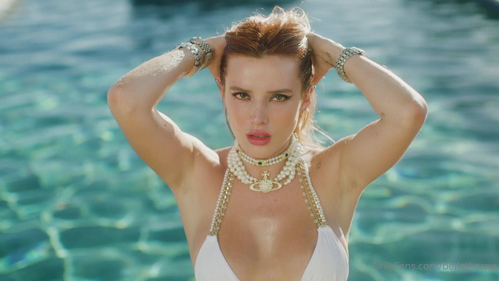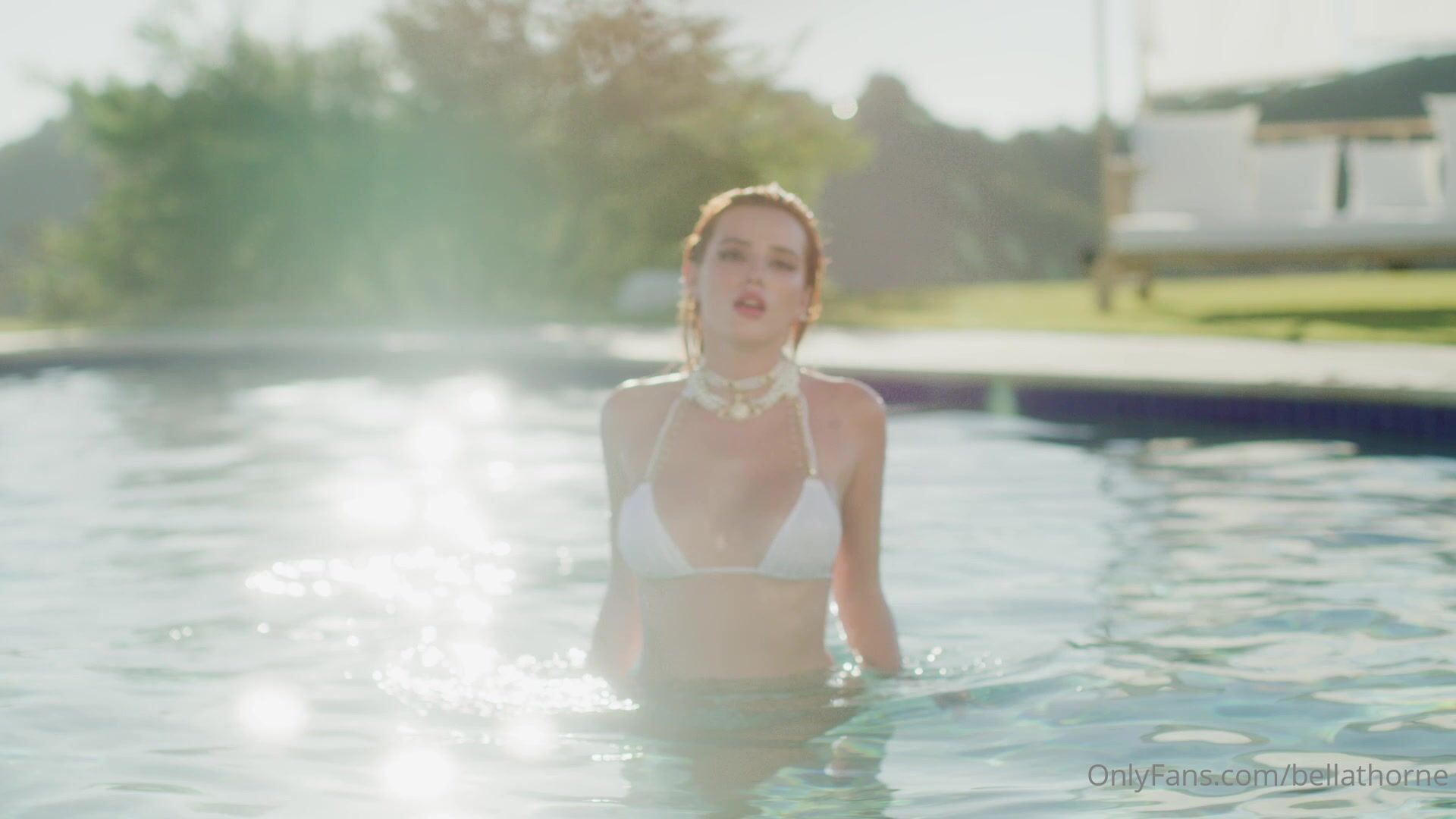 Bella Thorne Nude Pool White Bikini Teasing Video Le...