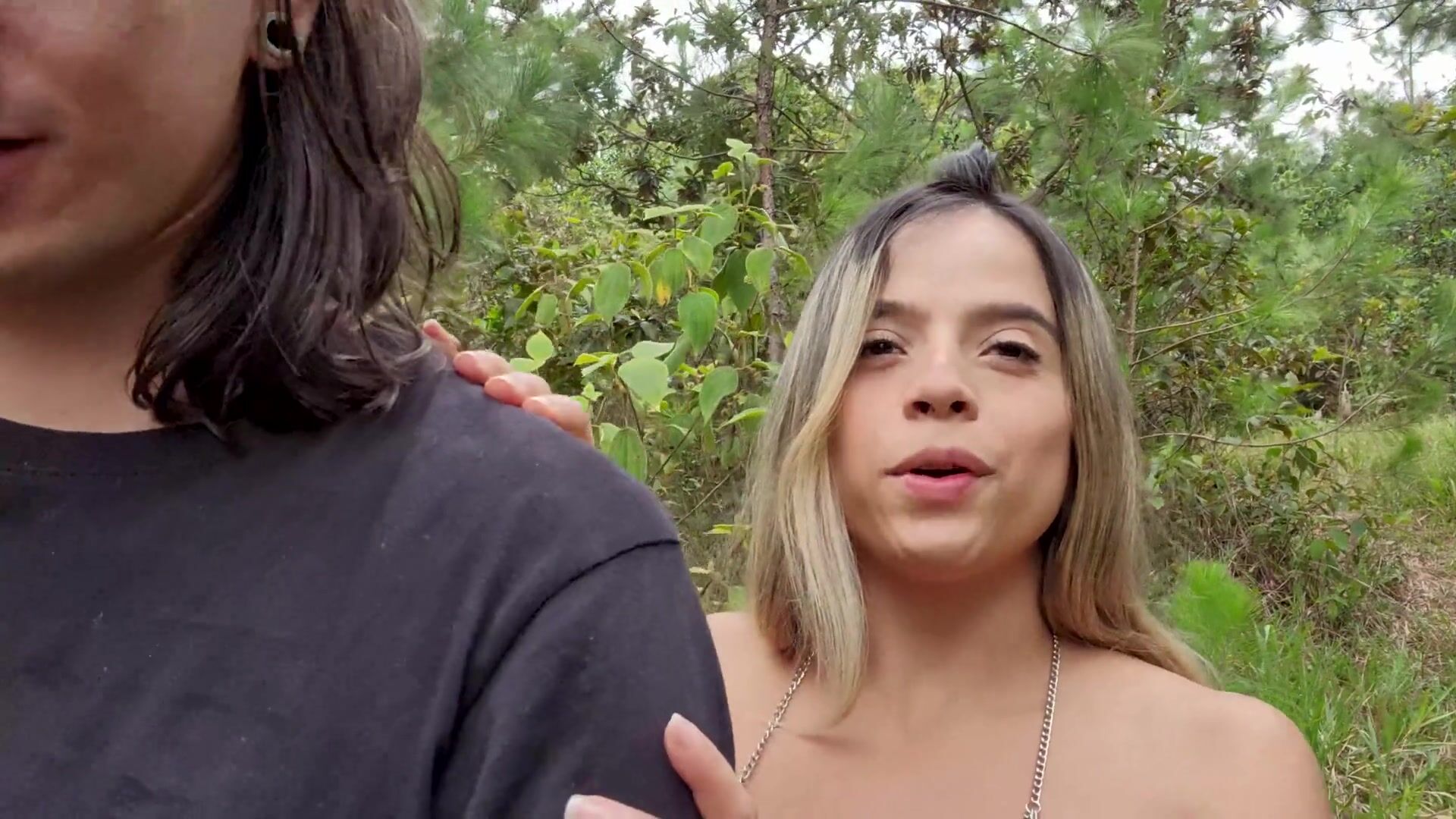 Paseando por el bosque con mi novia, decidimos tener sexo en el cerro y le acabo en la boca