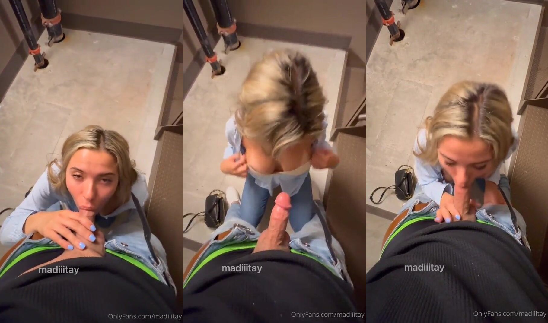 spicy slut sucks stranger near stairs after bet she lost