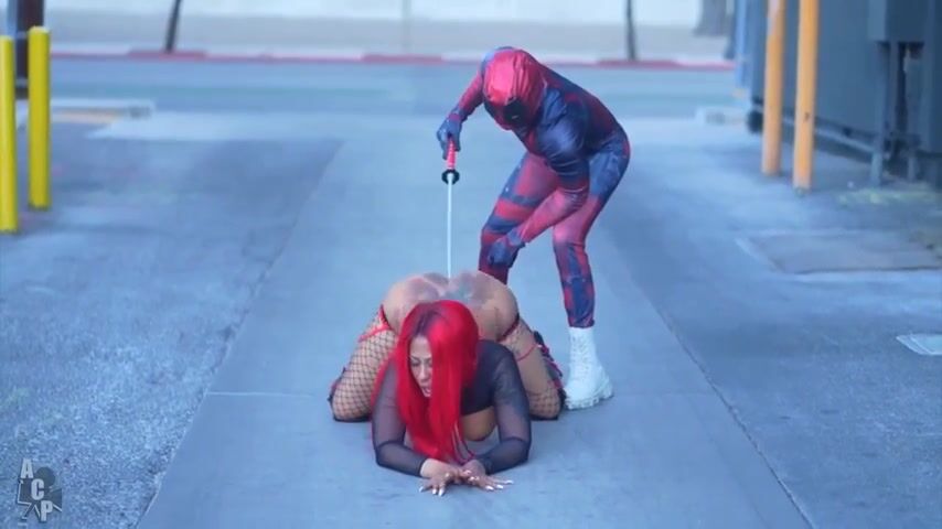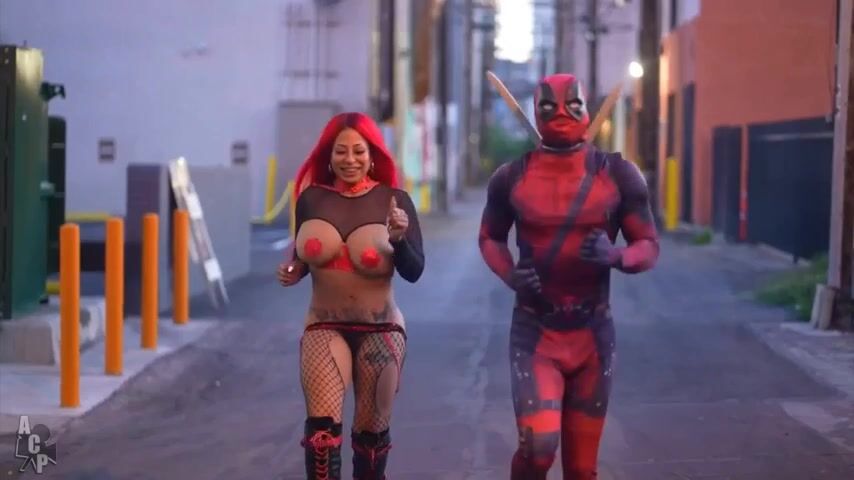 Deadpool Parody Video with Curvy Goddess in Fishnets and Big Boobs