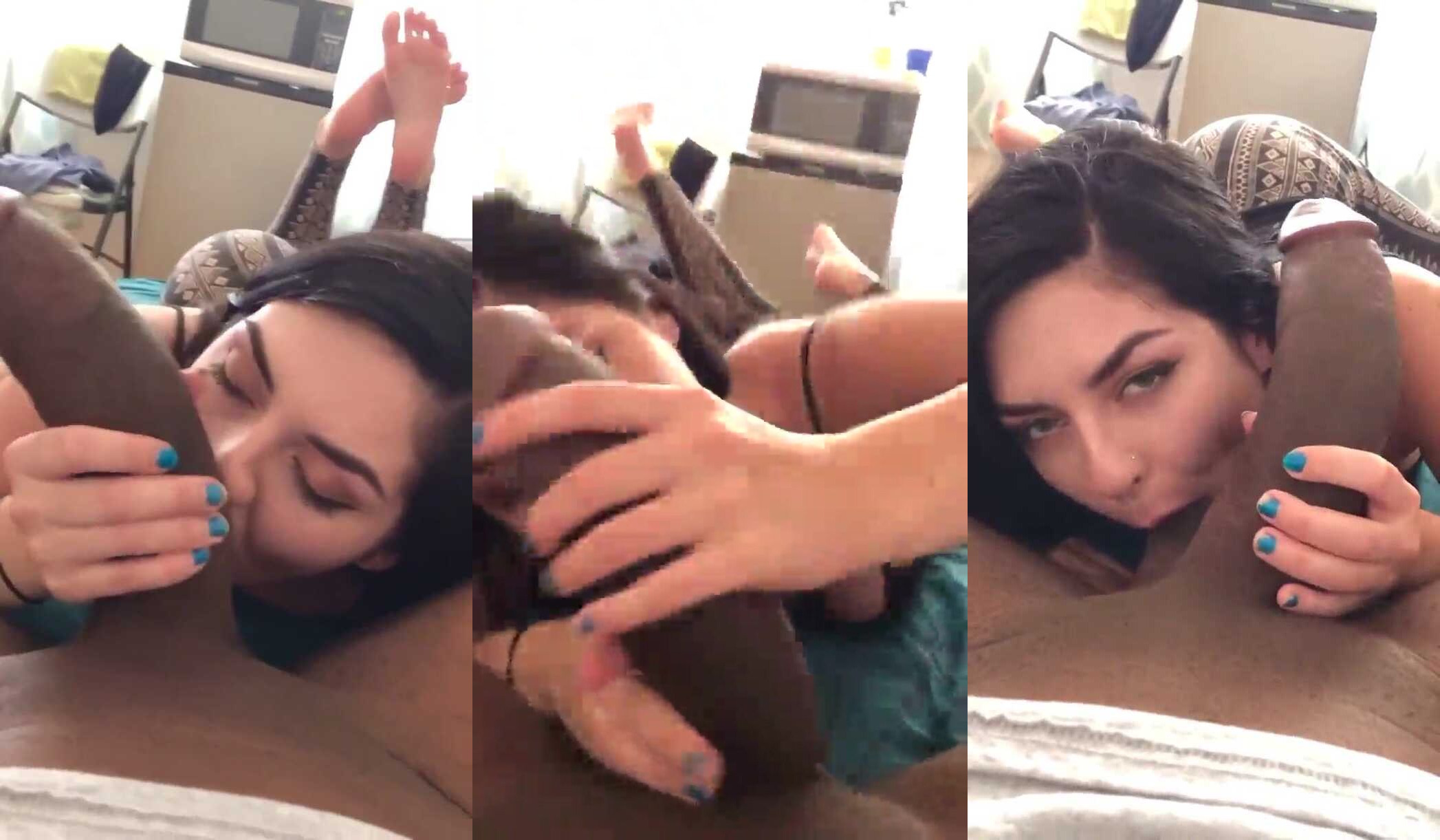 Latina babe sucking monster cock On The Bed Video