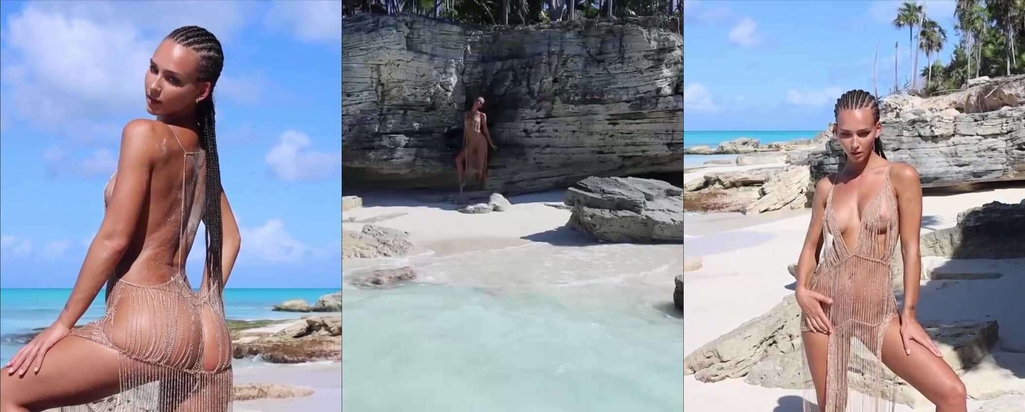 Rachel Cook Stuns In A See-through Mesh Outfit On A Tropical Beach In This Seductive
