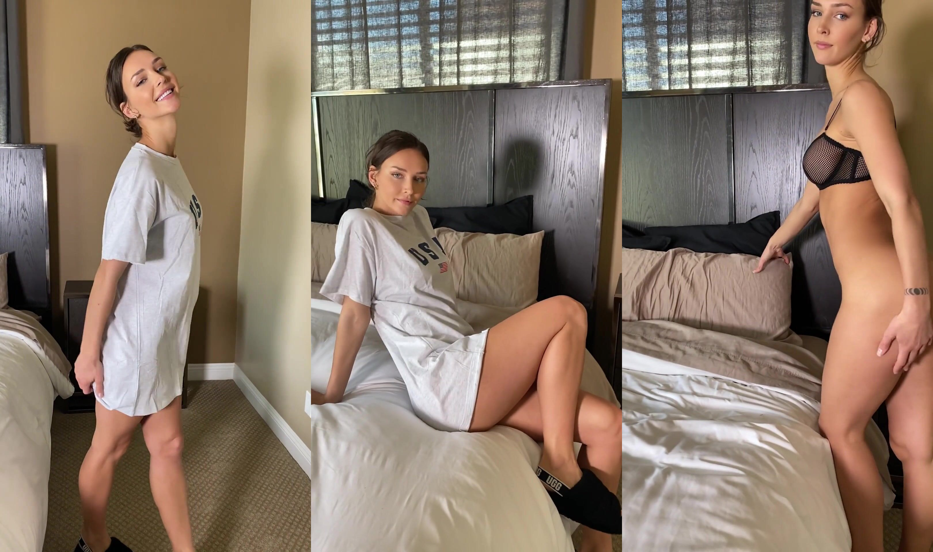 Rachel Cook strips from a loose white T-shirt to reveal her sexy black lingerie in this seductive bedroom video that’s sure to leave you wanting more.