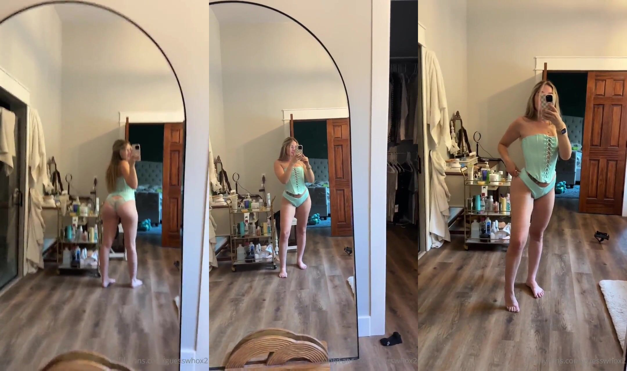 Guesswhox2 Makenna Playfully In A Sexy Green Bodysuit And Showing Off Her Curves In This Steamy Video