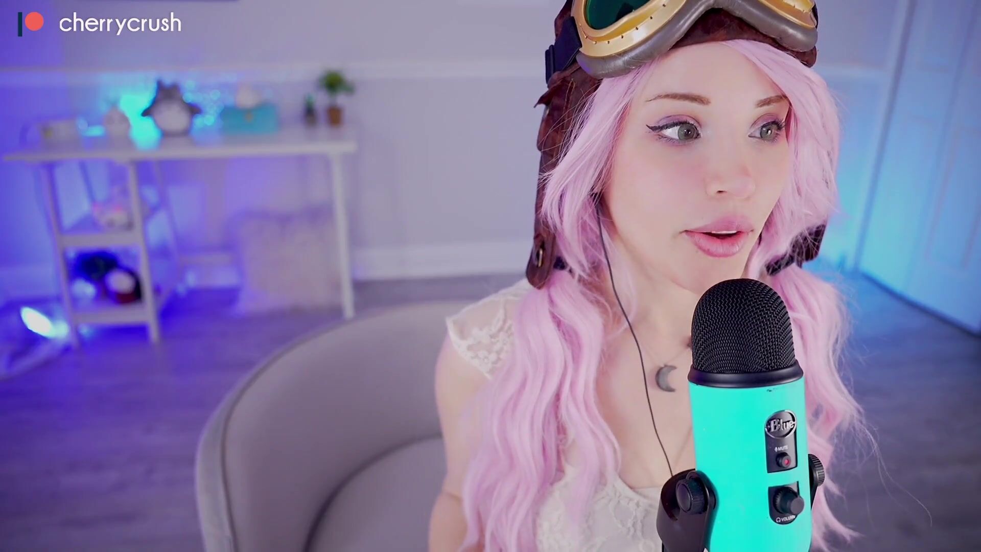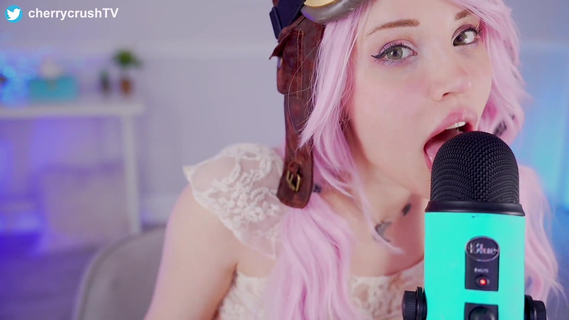 Pink-haired babe cherrycrush teases with her mouth in this seductive ASMR video, wearing lingerie and creating an intimate vibe for your pleasure.