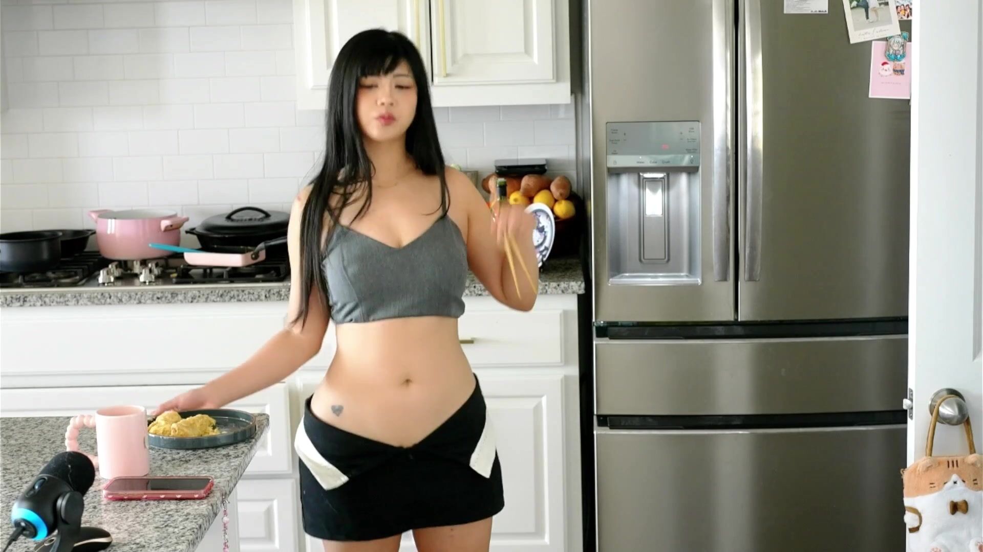 Exotic Asian beauty Quqco strips down in the kitchen while playing with her petite frame and smooth curves in a short video guaranteed to leave you craving more.