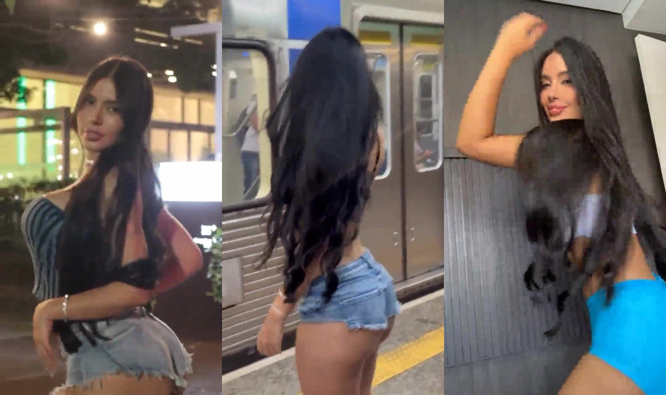 Sexy Latina Estter Muniz Teasing with Short Skirts and Tight Outfits in Public Video