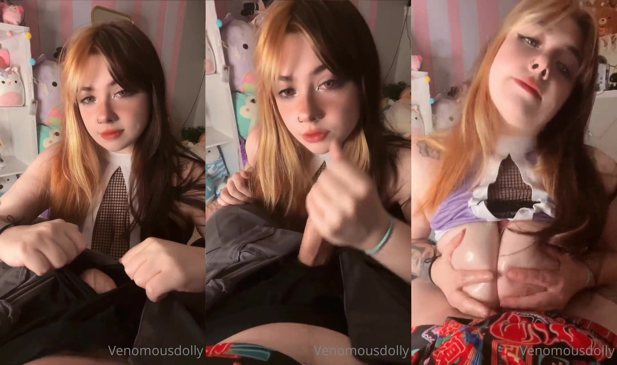 Petite Cutie Venomousdolly shows off a sexy schoolgirl look before pleasing her BF's Cock in this steamy solo video.