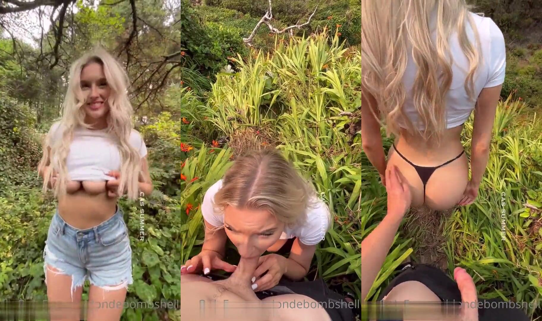 Csblondebombshell sets the woods on fire in this steamy outdoor video, teasing her juicy ass in tight shorts before delivering a wild blowjob and fuck session that leaves nothing to the imagination.