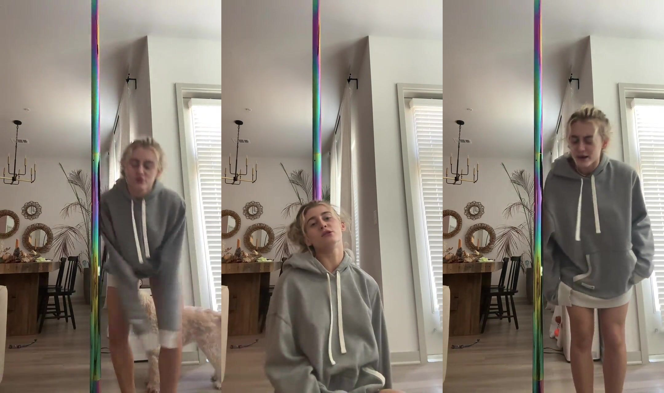 Cute Abby Sexy IG Model steals the show in a cozy hoodie and shorts, playing in a bright room.