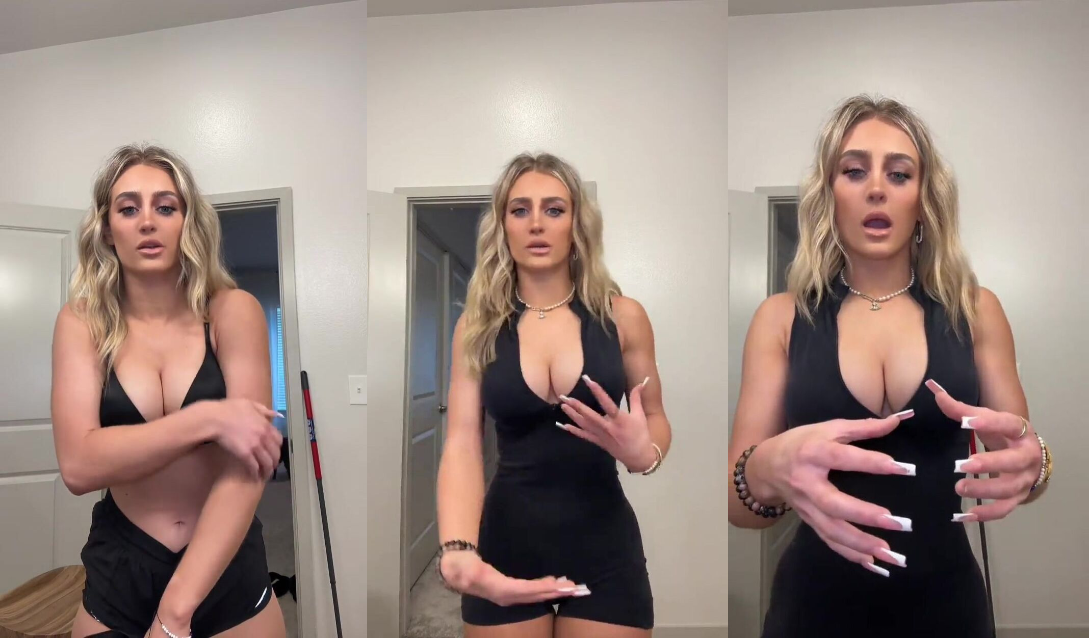 Blonde Bombshell Abby In A Sexy Black Dress Showing Off Her Curves In This Short Video