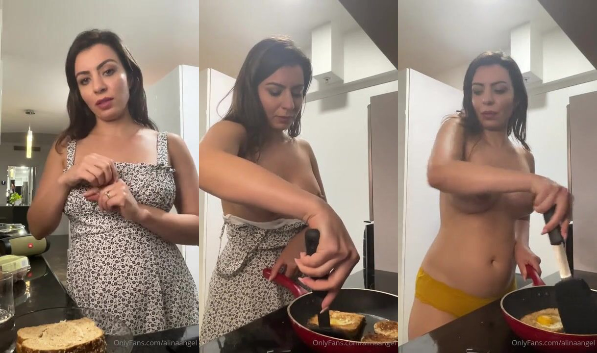 AlinaAngel Cooks Breakfast in her Kitchen while Stripping Naked for her OnlyFans Video