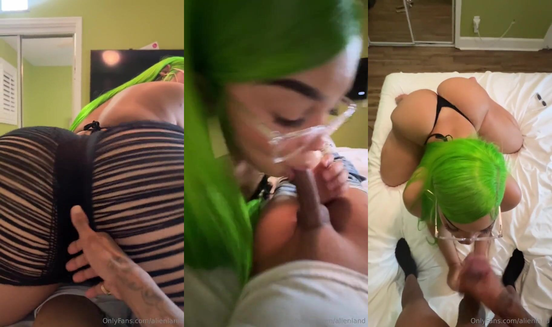 AlienLan Sloppy Blowjob Video with Green-Haired Gem Jewels Sucking Dick