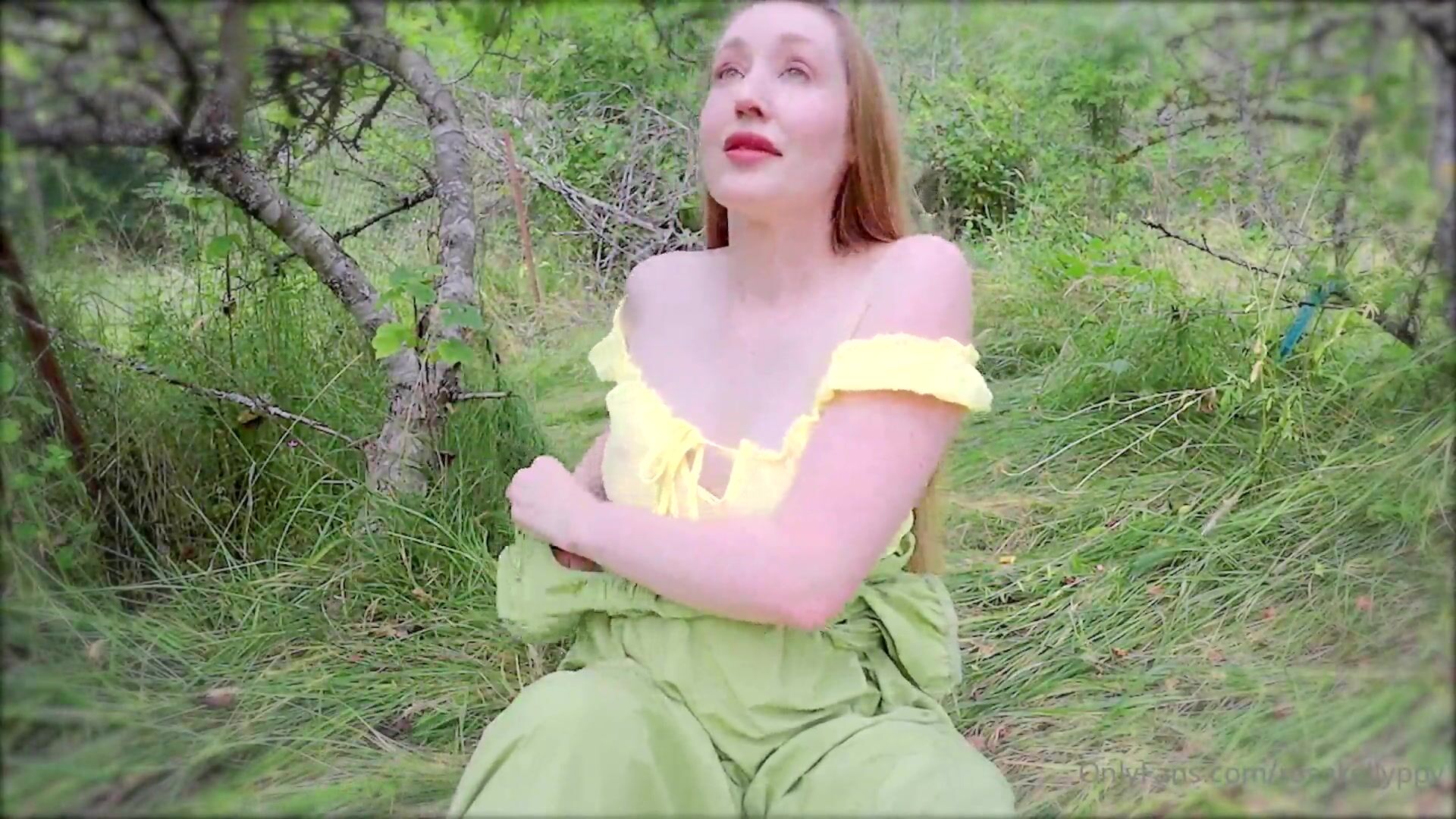 Rose Kelly teases in a green dress before getting naughty in nature with a public blowjob and outdoor pussy fingering session.