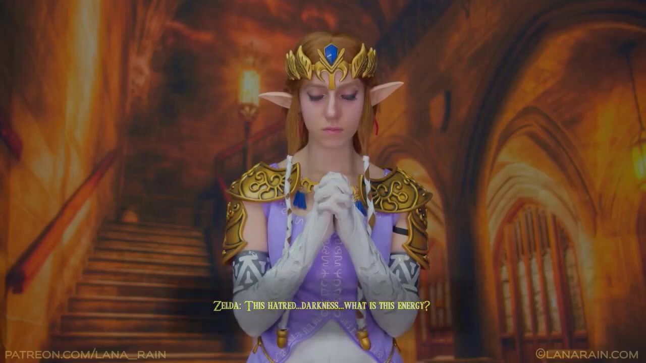 Lana Rain teases as naked Princess Zelda meets her new ruler in a hardcore fuck fest video, filled with epic cosplay sex, intense pounding, and royal pussy pleasure.