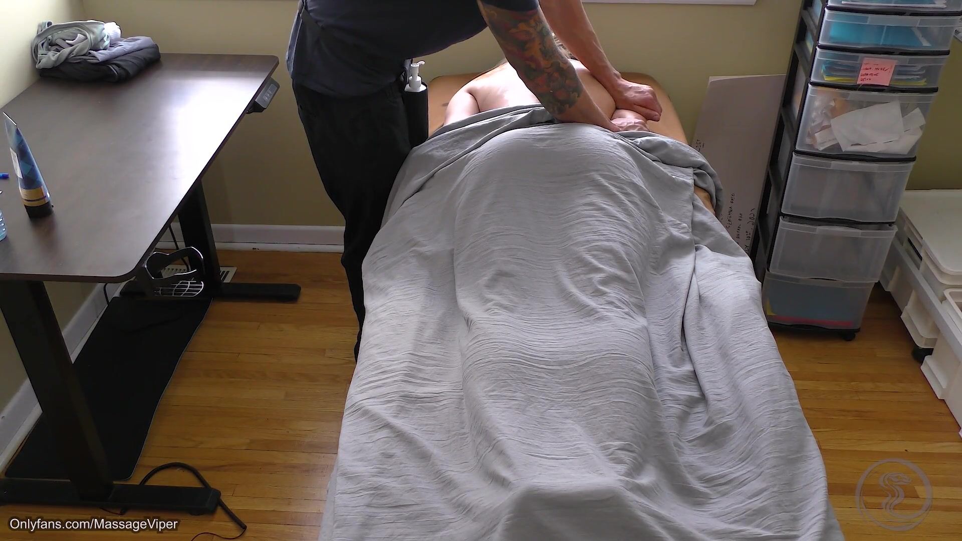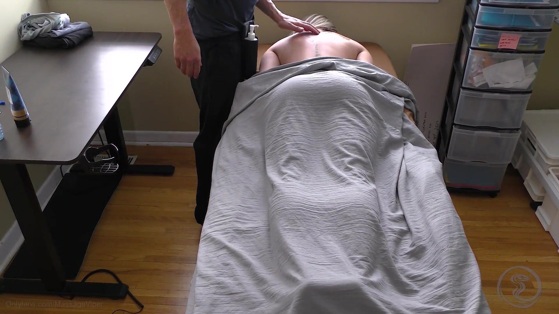 Viper gets slippery and slides her super tight curves all over the table in part 2 of her steamy massage parlor fuck fest video