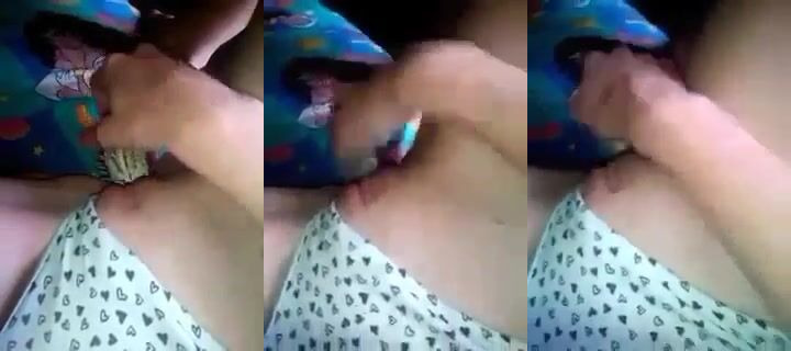 18yo Nymph Teases Tight Shaved Pussy with Hairbrush in Video