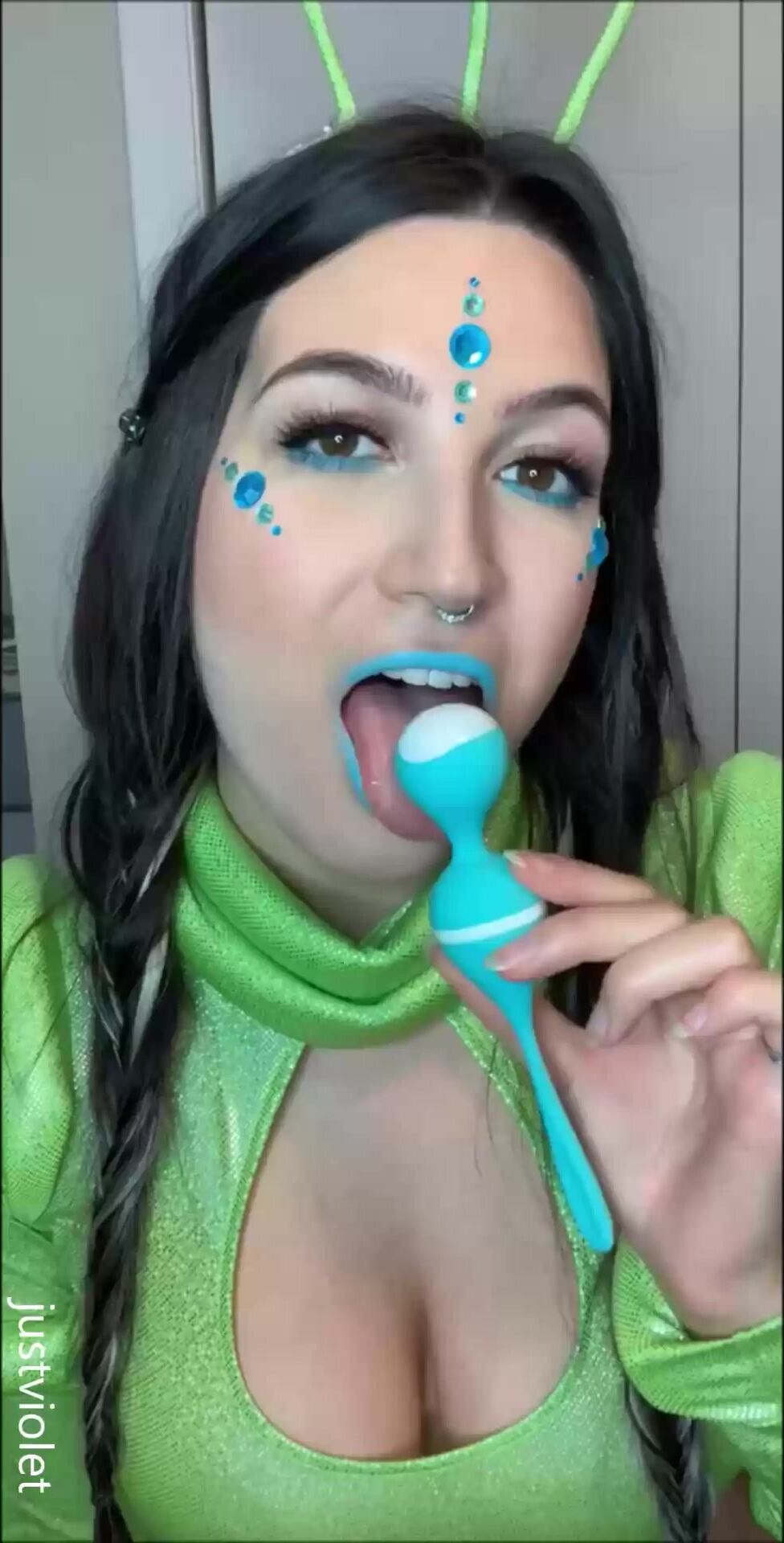 Sexy girl in costume masturbating