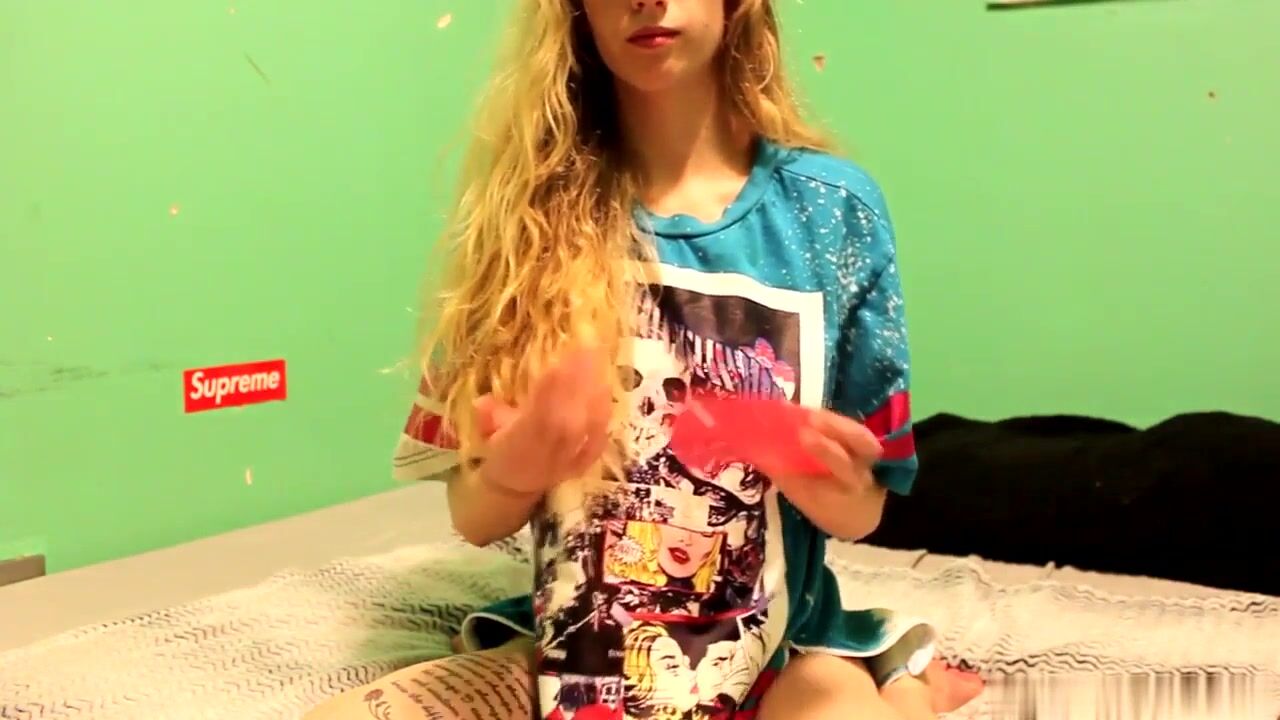 Sexy skinny babe masturbates with a big red dildo