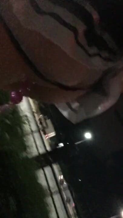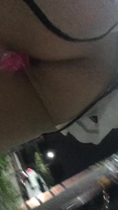 Girl walks the public street with dildo balls in wet pussy