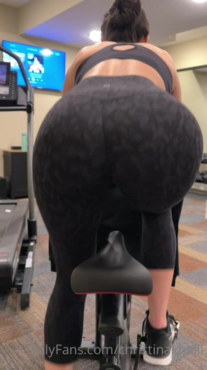 Check this Amazing Naked Tape Video of Christina Khalil Cycling In Her Home Gym Showing Her Sweaty Pants only seen on ViralPornhub.