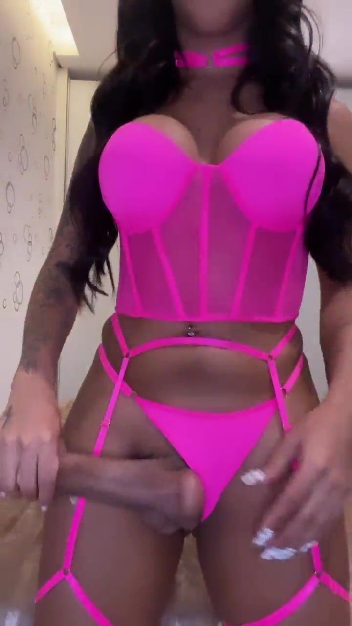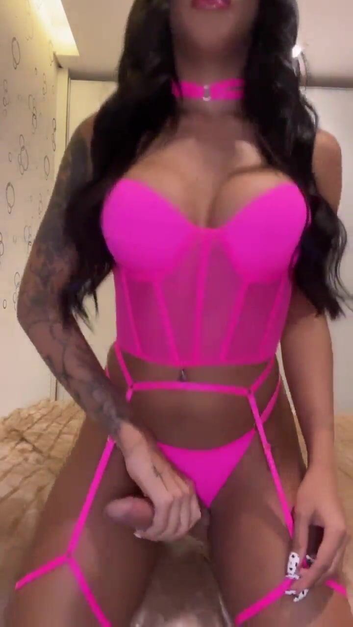 Tattooed Sissy With Big Tits Teasing Her Cock While Wearing Lingerie