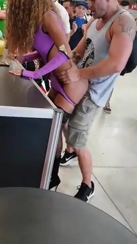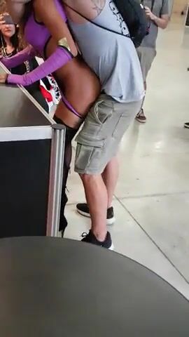 Curly Haired Ebony Model Gets Fucked At Airport