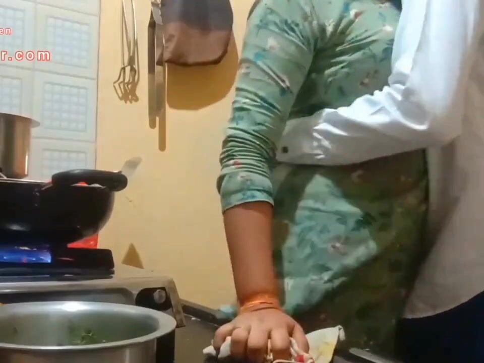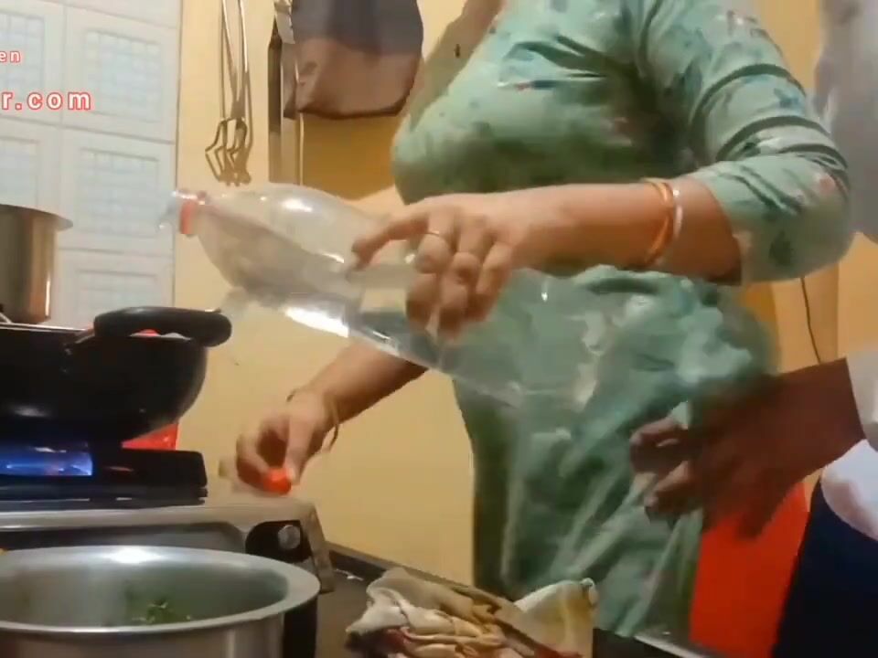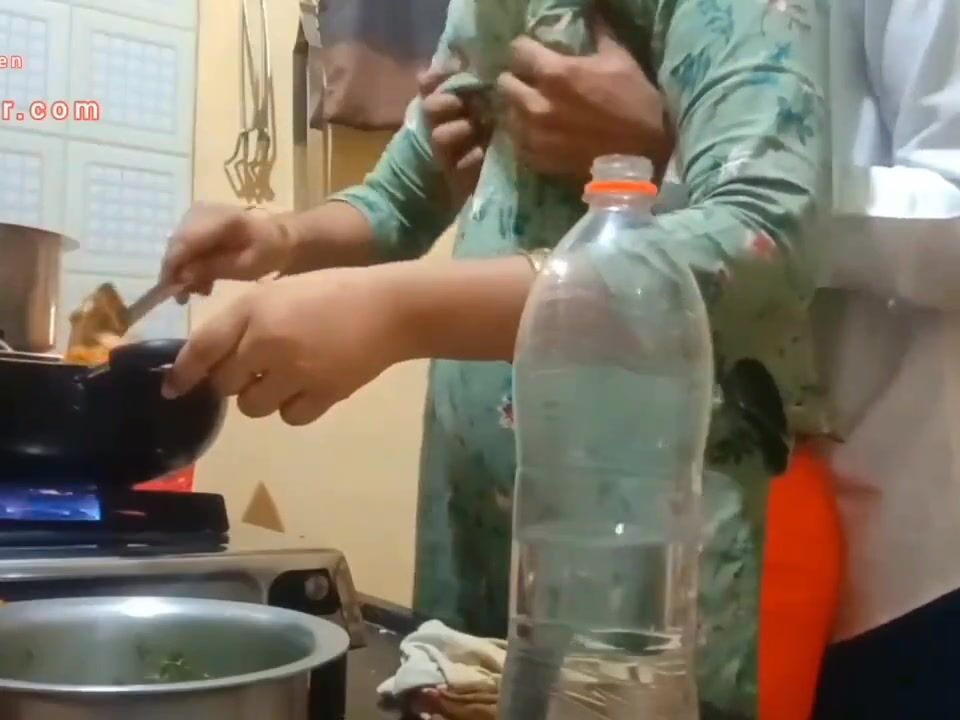 The boobs of the wife cooking the food and the chubby husband presses hard Indian Video