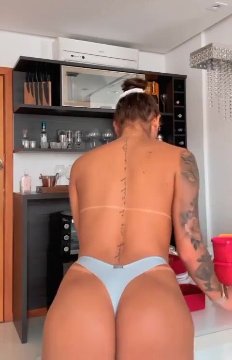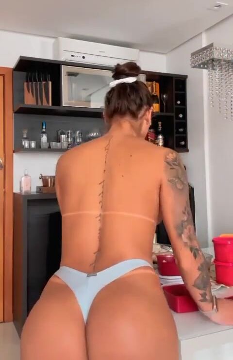 Pretty Sexy Babe Makes A Breakfast With Nude And Show Off Her Big Booty Cheeks