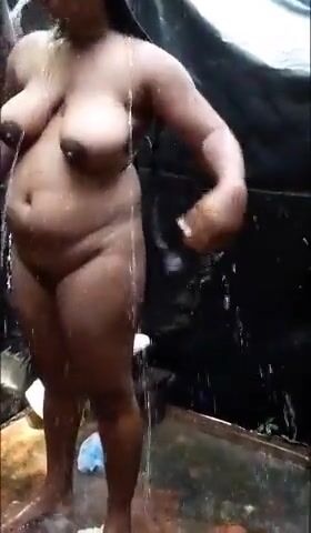 Rustic girl with big boobs bathing naked in a dirty bathroom Indian Video