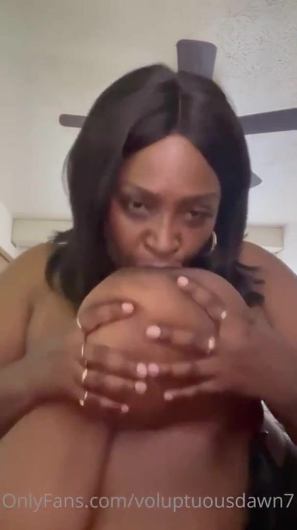 Voluptuousdawn7 Ebony BBW Sucking Her Own Tits OnlyFans Video